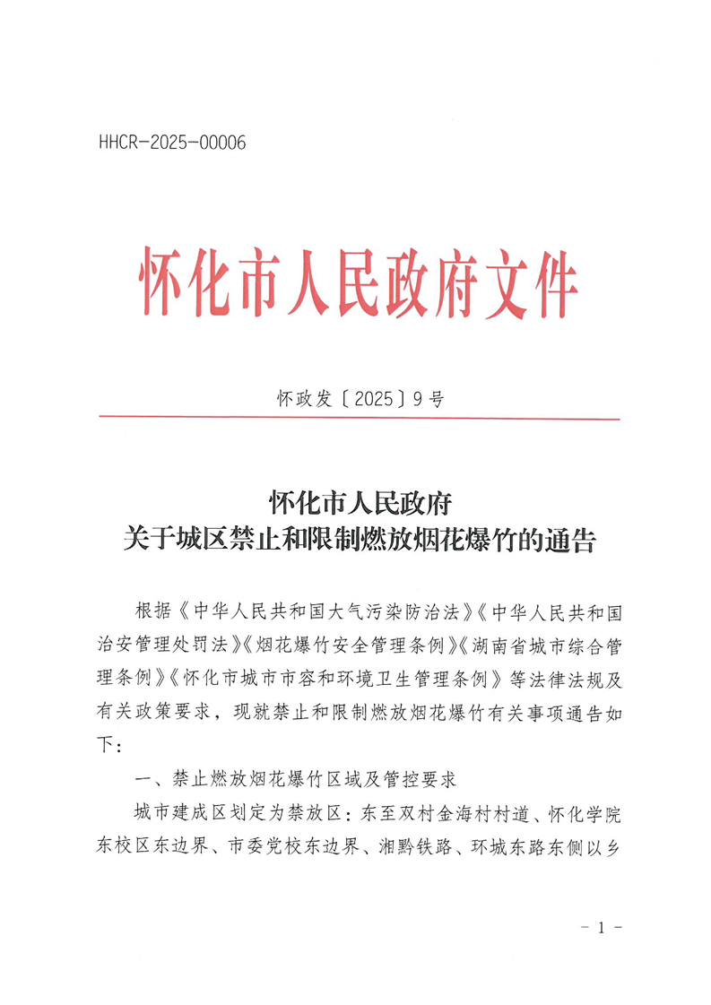 索引號(hào):431200/2025-034948 文號(hào):懷政發(fā)〔2025〕9號(hào) 統(tǒng)一登記號(hào):HHCR-2025-00006