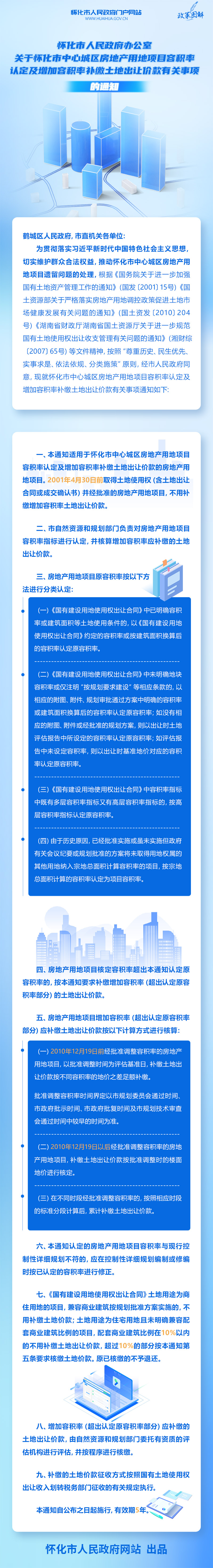 • 音頻解讀:懷化市人民政府辦公室關于懷化市中心城區(qū)房地產(chǎn)用地項目容積率認定及增加容積率補繳土地出讓價款有關事項的通知