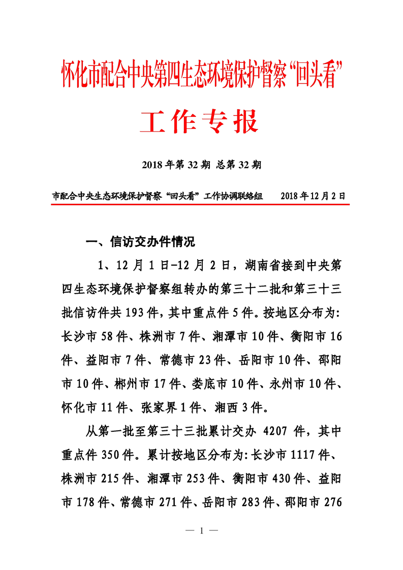 第三十二期 懷化市配合中央生態(tài)環(huán)境督察回頭看工作專報