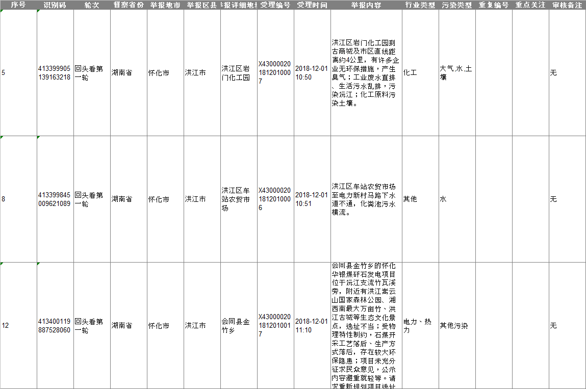 中央生態(tài)環(huán)保督察“回頭看”轉(zhuǎn)辦信訪件(12.2)