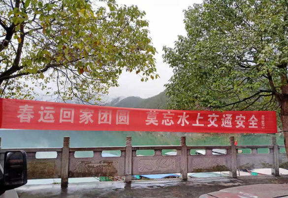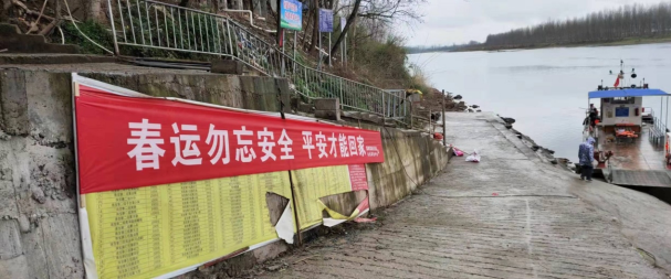 圖12麻陽縣水運事務中心在重點渡口碼頭顯要位置處懸掛的春運安全橫幅