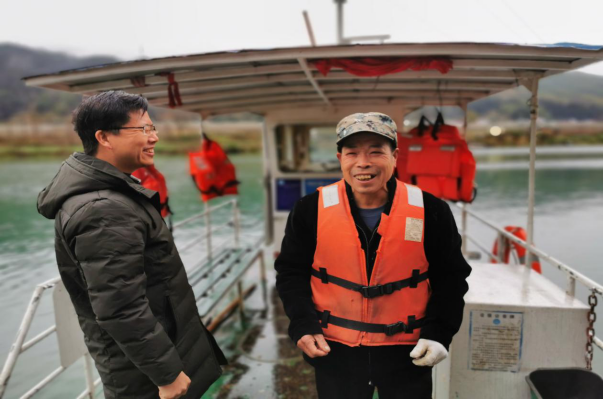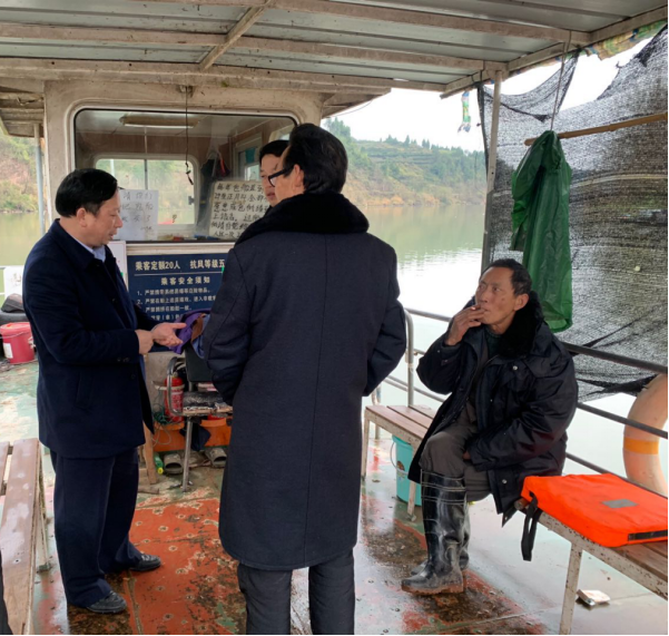 圖2 市水運事務中心主任江貴山帶隊在麻陽縣丁家村渡口現(xiàn)場檢查渡船安全狀況及運行情況