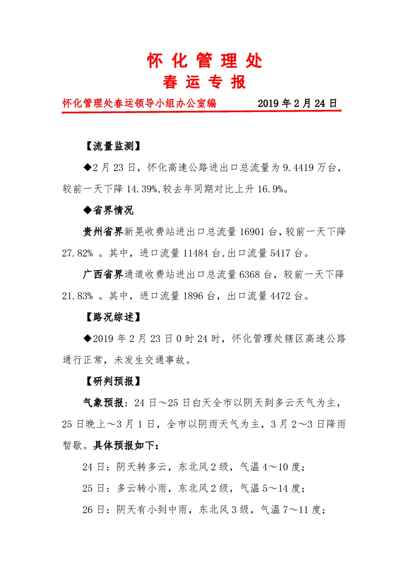 2019年懷化市高速公路春運(yùn)專(zhuān)報(bào)(第33期)
