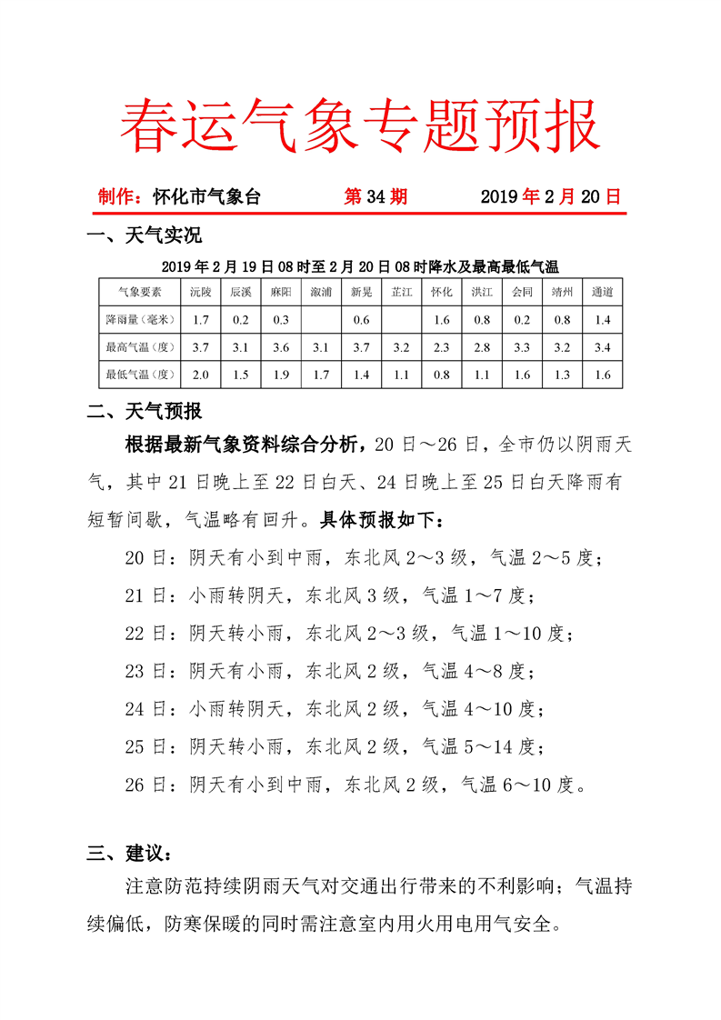 春運氣象專題預報(第34期)