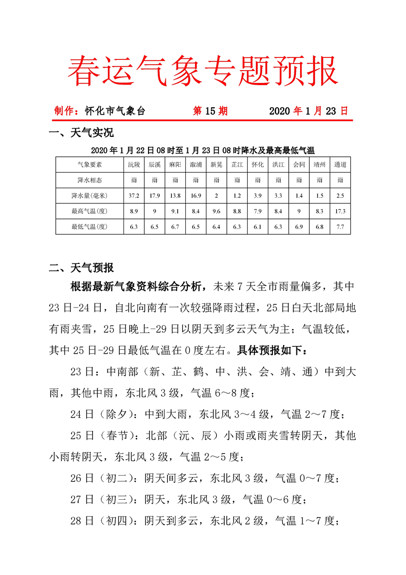 春運(yùn)氣象專題預(yù)報(bào) 第15期
