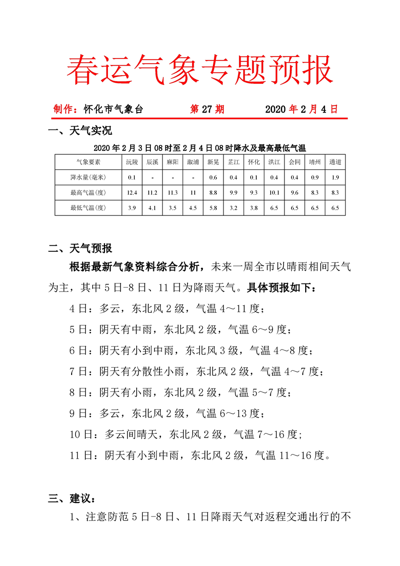 春運(yùn)氣象專題預(yù)報 第27期