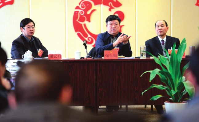 1月9日上午,市委書記張自銀與鶴城代表團(tuán)一起審議。 (陸曉鵬 攝)
