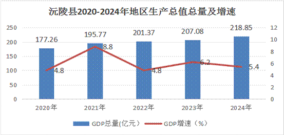 據(jù)初步核算,全縣地區(qū)生產(chǎn)總值 218.85億元[2],同比增長(zhǎng)5.4%(按可比價(jià)格計(jì)算,下同)。其中,第一產(chǎn)業(yè)增加值34.44億元,同比增長(zhǎng)2.7%;第二產(chǎn)業(yè)增加值83.21億元,同比增長(zhǎng)7.2%;第三產(chǎn)業(yè)增加值101.19億元,同比增長(zhǎng)4.8%。三次產(chǎn)業(yè)結(jié)構(gòu)為16:38:46。按常住人口計(jì)算,全縣人均地區(qū)生產(chǎn)總值為44365元,同比增長(zhǎng)6.8%。