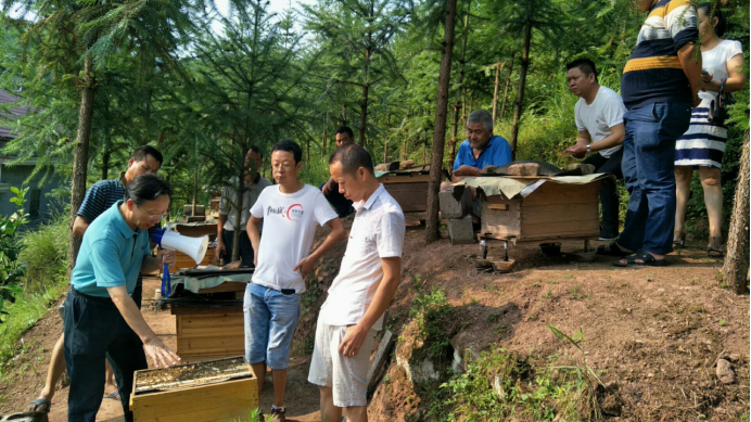 2019年9月3日,華中農(nóng)大張新軍教授在涼亭坳鄉(xiāng)尹家?guī)X村現(xiàn)場指導和培訓養(yǎng)蜂知識。