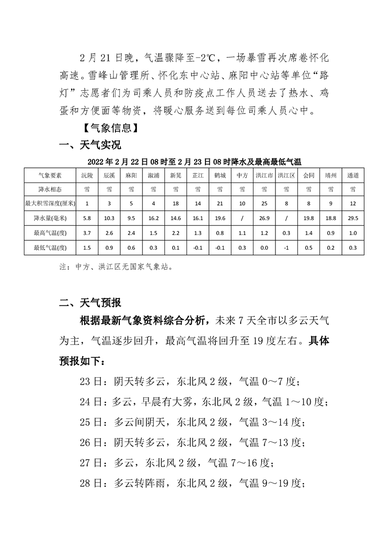 2022年高速懷化分公司第38期春運(yùn)專報(bào)