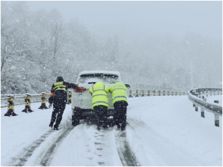 雙江中心大站工作人員推車一公里,護(hù)送被困車輛安全駛離高速公路。