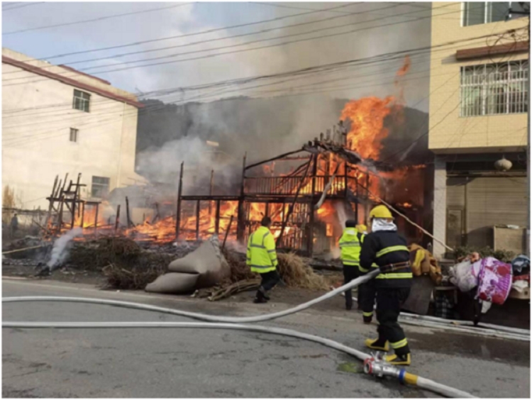 雪峰山管理所馳援洪江市塘灣鎮(zhèn)水源村失火現(xiàn)場(chǎng)。