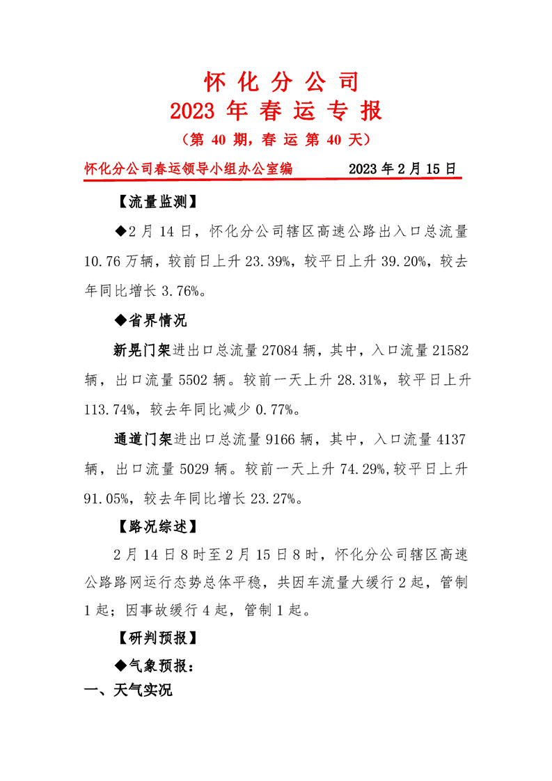 2023年懷化分公司春運專報-第40期
