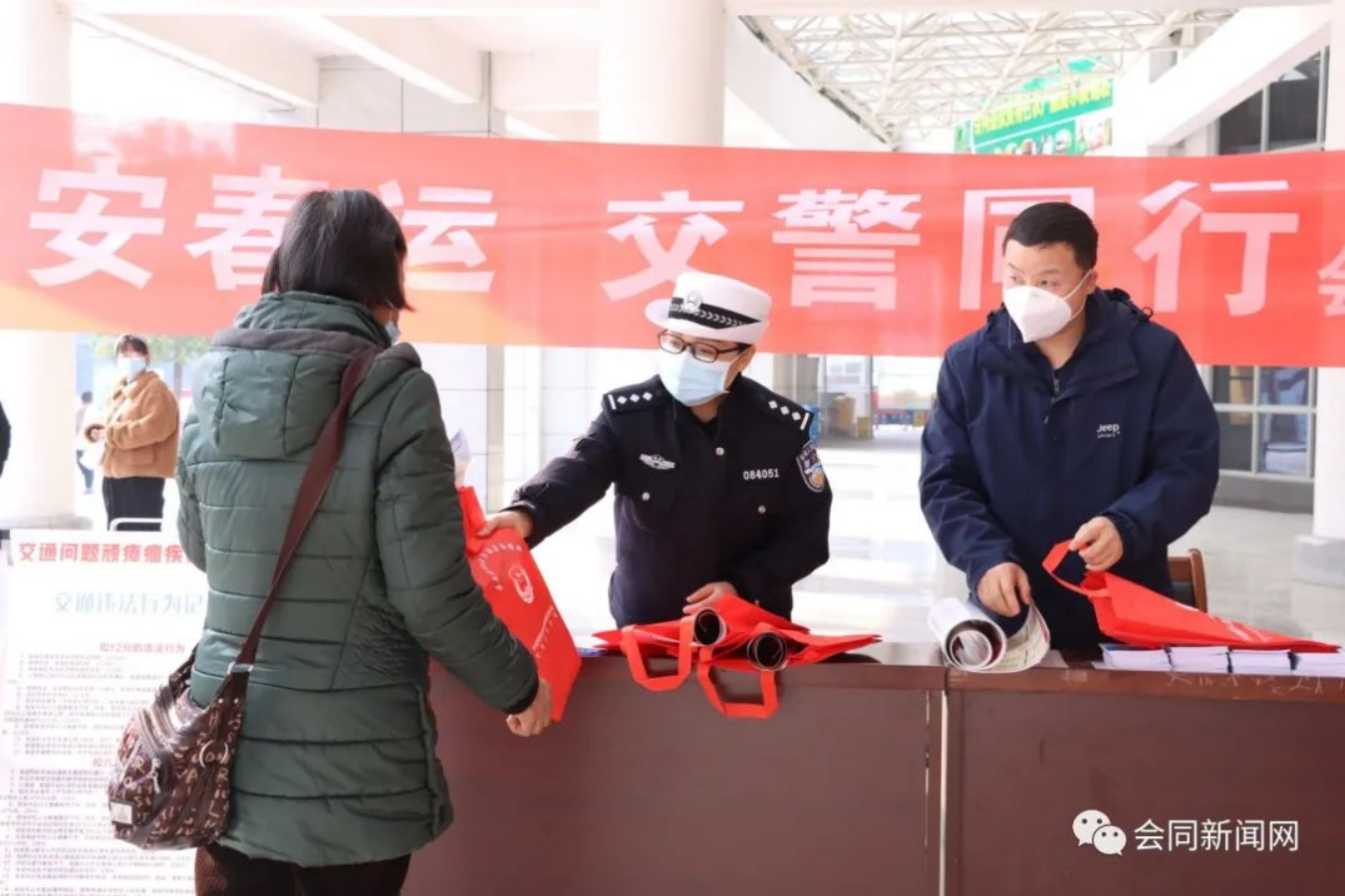 工作人員與志愿者在車(chē)站入站口搭建服務(wù)臺(tái),開(kāi)展交通安全科普宣傳,并針對(duì)不同旅客需求,提供問(wèn)詢(xún)指導(dǎo)、安檢協(xié)助、行李幫提等服務(wù),還為廣大旅客送上年畫(huà)、口罩、手提袋等物品,用一顆公益心溫暖旅客回家路。志愿者們忙碌的身影穿梭在車(chē)站內(nèi)外,形成了一道亮麗的風(fēng)景。