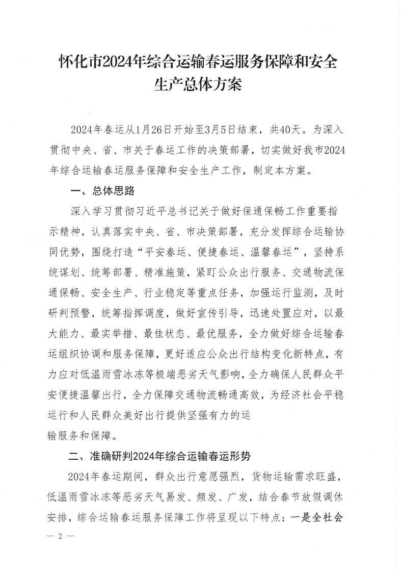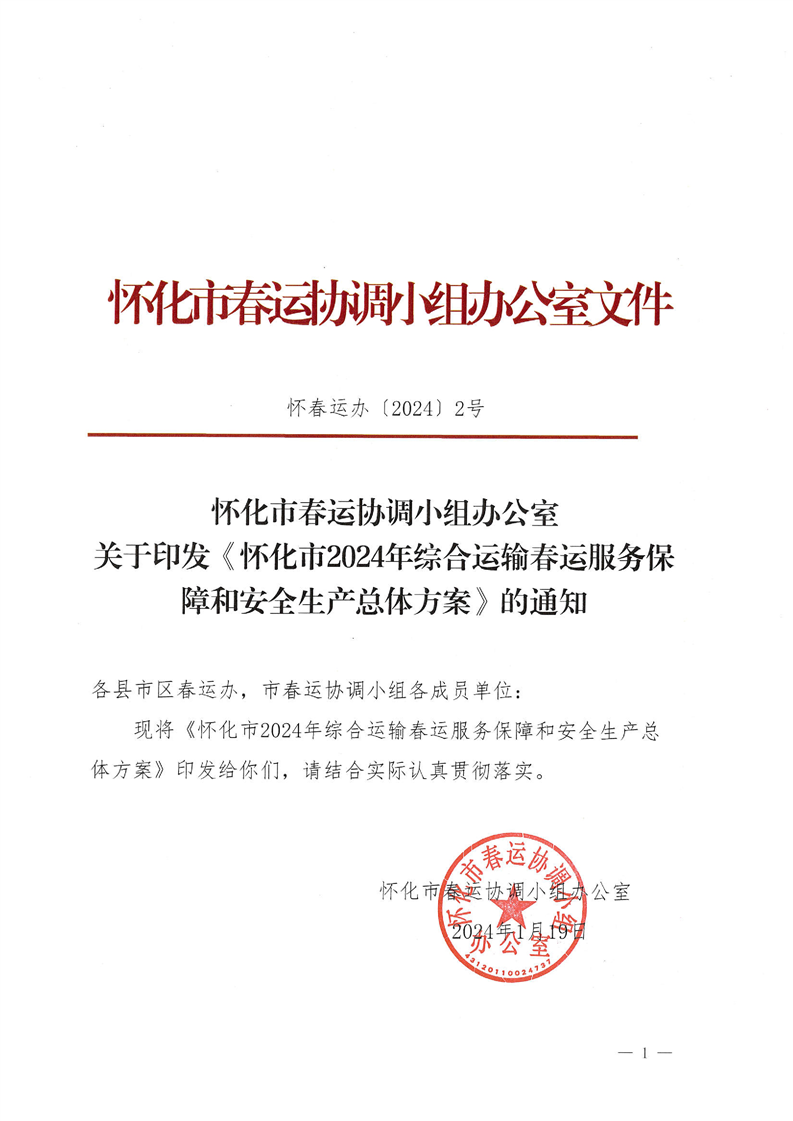 懷化市春運辦關于印發(fā)《懷化市2024年綜合運輸春運服務保障和安全生產總體方案》的通知