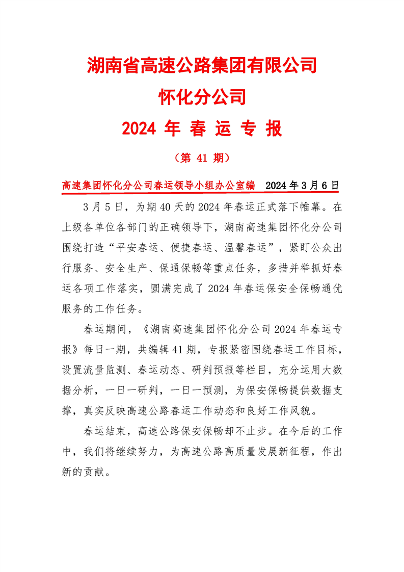 2024年懷化分公司春運(yùn)專報-第41期
