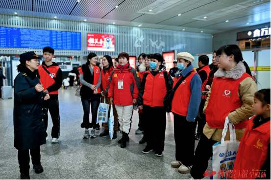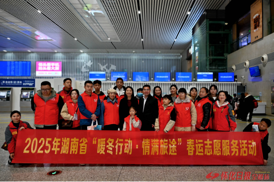展現(xiàn)懷化青年的風采。懷化高鐵南站站長刁紅霞以及懷化高鐵南站黨總支書記吳錦東向志愿者們表示感謝,希望志愿者們用“志愿紅”點燃春運,持續(xù)溫暖旅客回家路。