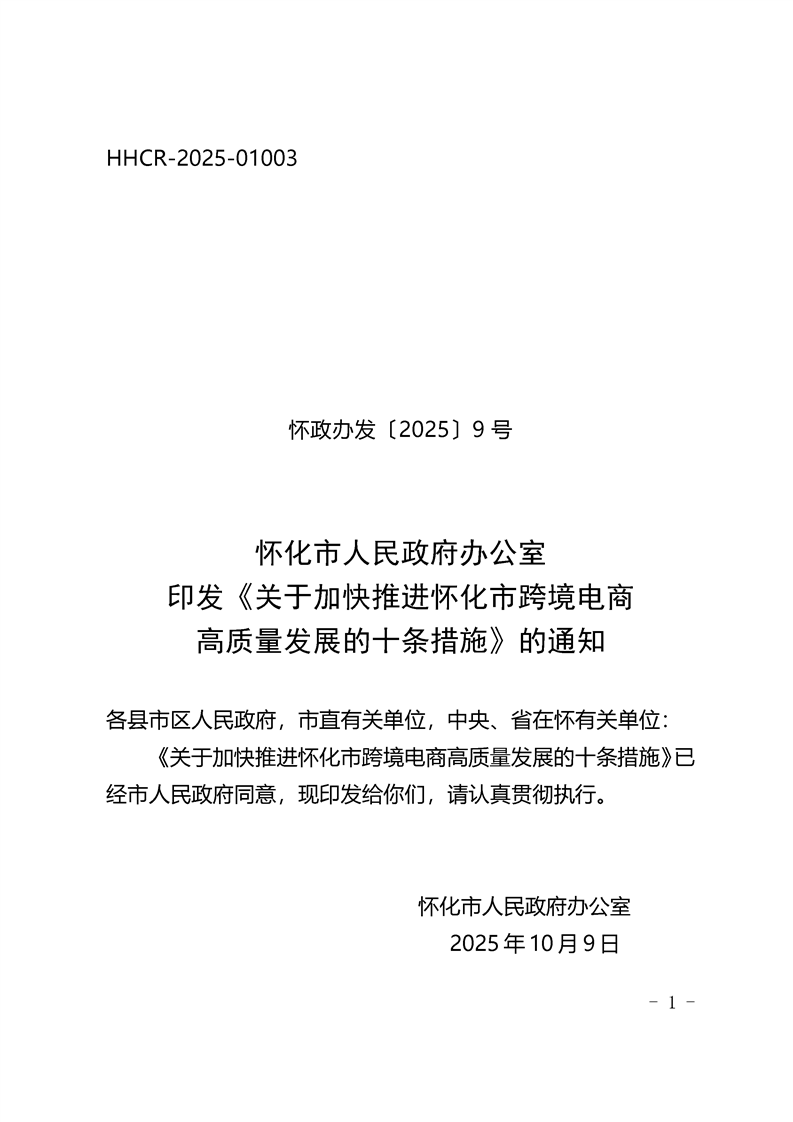 關(guān)于印發(fā)《關(guān)于加快推進懷化市跨境電商高質(zhì)量發(fā)展的十條措施》的通知